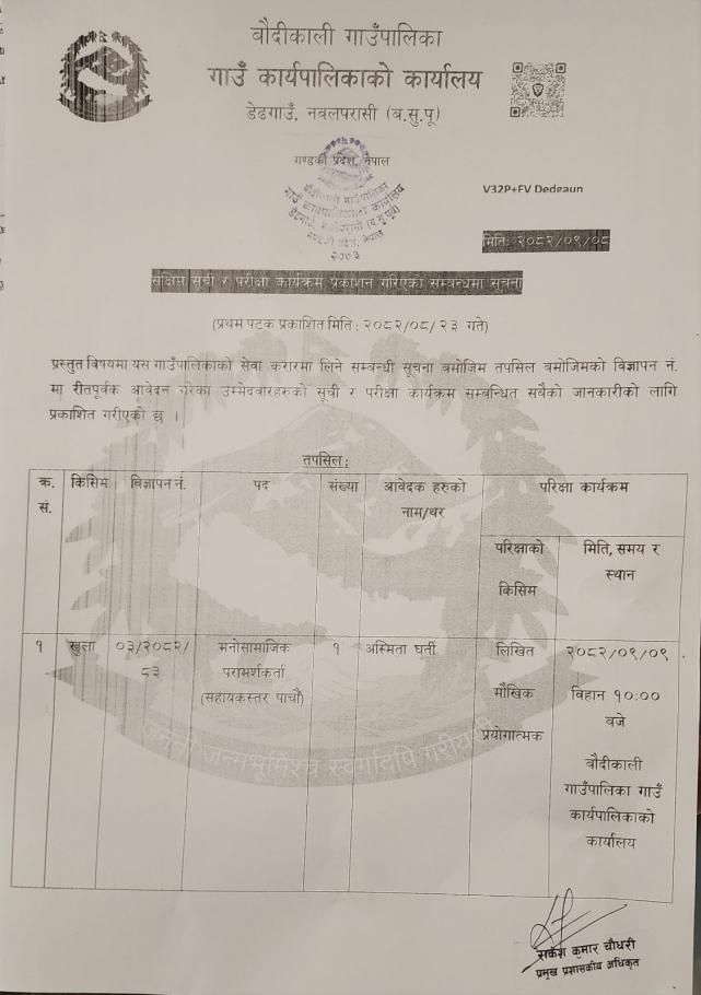 संक्षिप्त सूची र परिक्षा कार्यक्रम प्रकाशन गरिएको सम्बन्धी सूचना ।