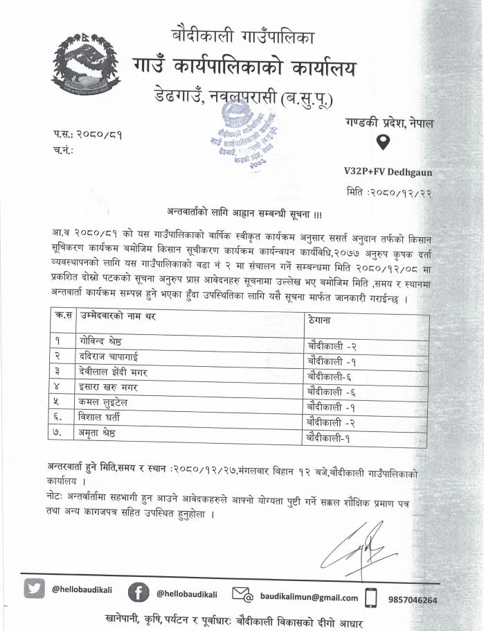 अन्तर्वार्ताको लागि आव्हान सम्बन्धी सूचना ।