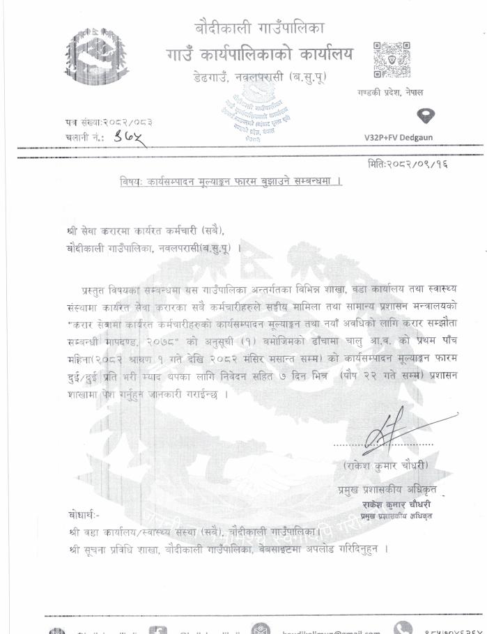 कार्यसम्पादन मुल्यांकन फारम बुझाउने सम्बन्धमा ।