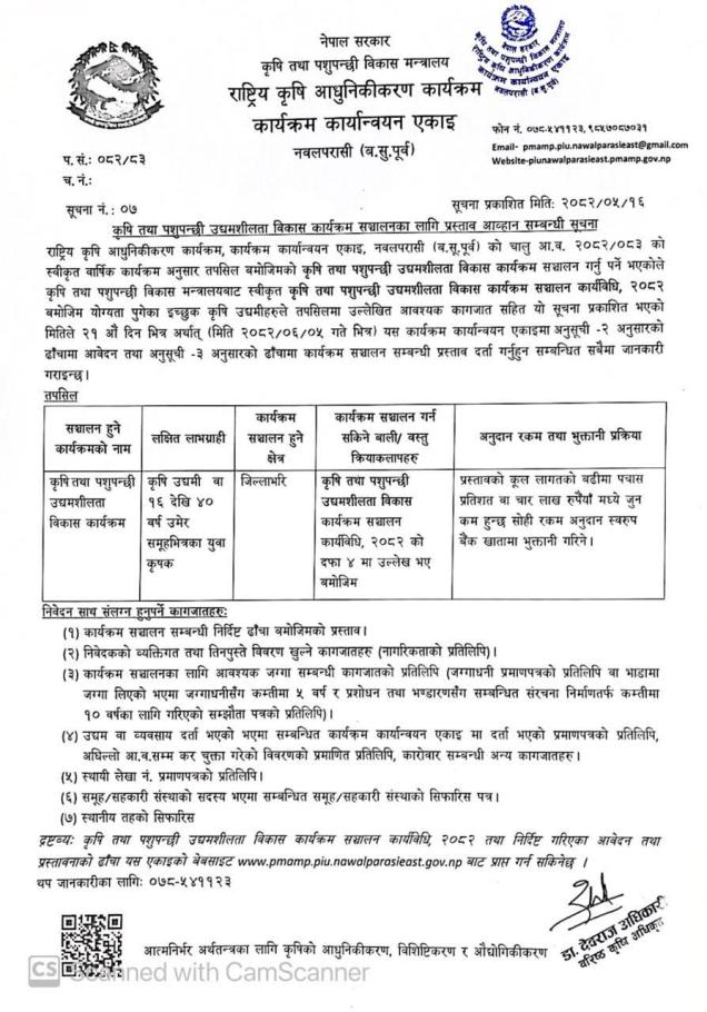 » कृषि तथा पशुपन्छी उद्यमशीलता विकास कार्यक्रम संचालनका लागि प्रस्ताव आव्हान सम्बन्धी सूचना ।