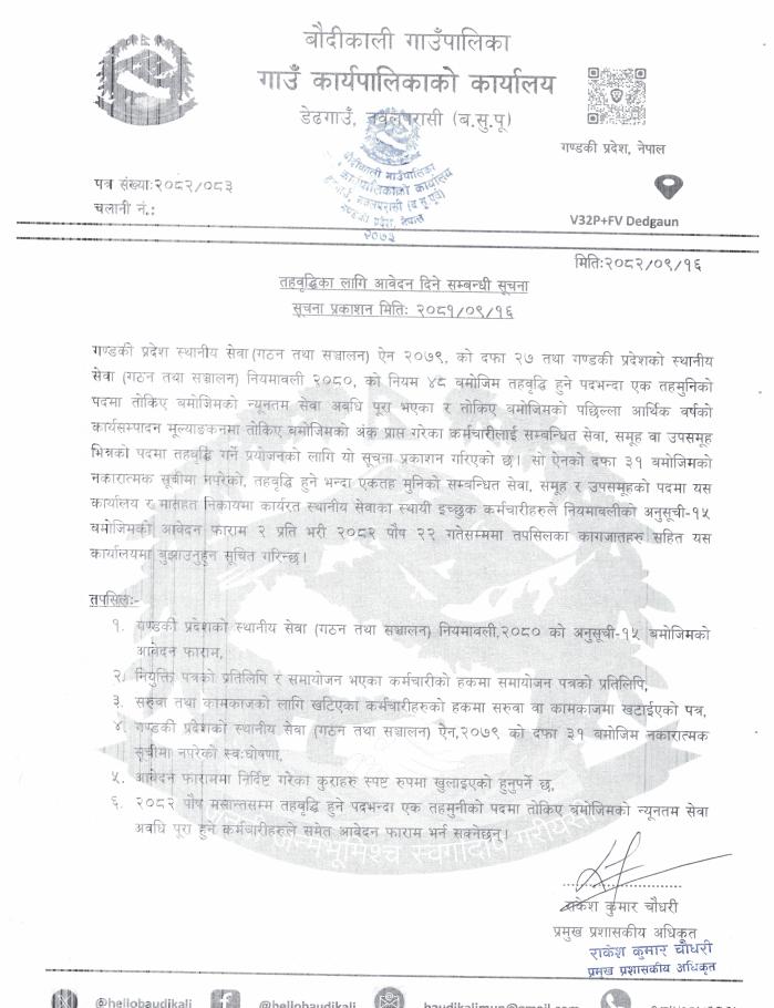 » तहवृद्धिका लागि आवेदन दिने सम्बन्धी सूचना ।
