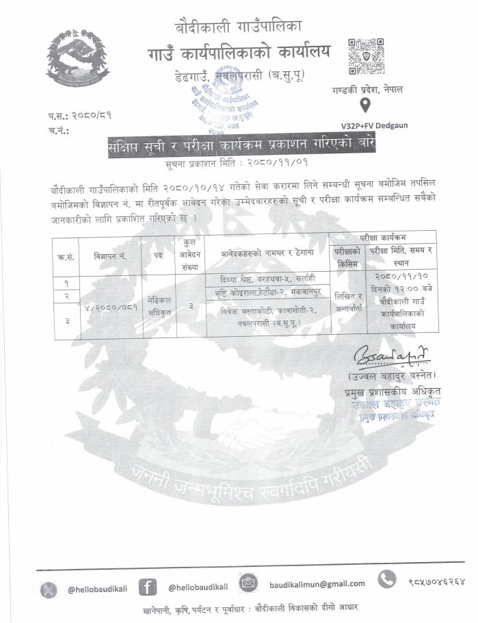 संक्षिप्त सूची र परिक्षा कार्यक्रम प्रकाशन गरिएको सम्बन्धी सूचना ।